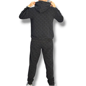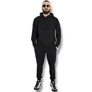 - Colore e Motivo: La tuta è di colore nero, con un logo "ICON" ripetuto su tutta la superficie (stampa all-over).