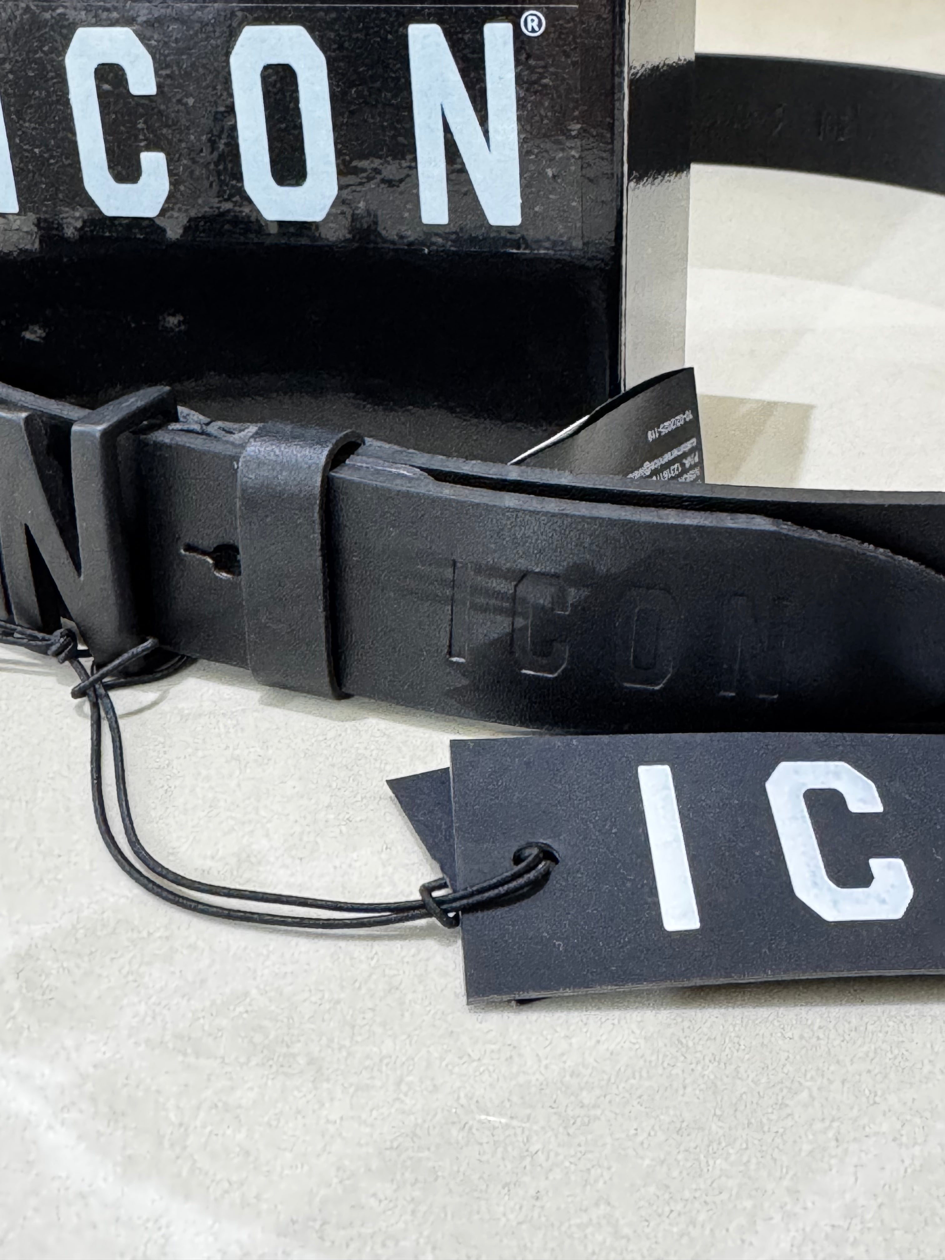Cintura in pelle con logo Icon opaco e scritta Icon in rilievo. Un accessorio essenziale che combina stile minimalista e qualità artigianale. Il design sobrio si adatta perfettamente a qualsiasi guardaroba, dalle occasioni casual ai look più raffinati. La fibbia robusta garantisce comfort e durabilità nel tempo. Un pezzo versatile che eleva ogni outfit con eleganza discreta.