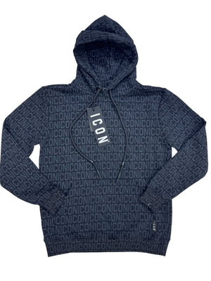 đź‘• Felpa con cappuccio: logo ICON all-over, tasca a marsupio, coulisse regolabile