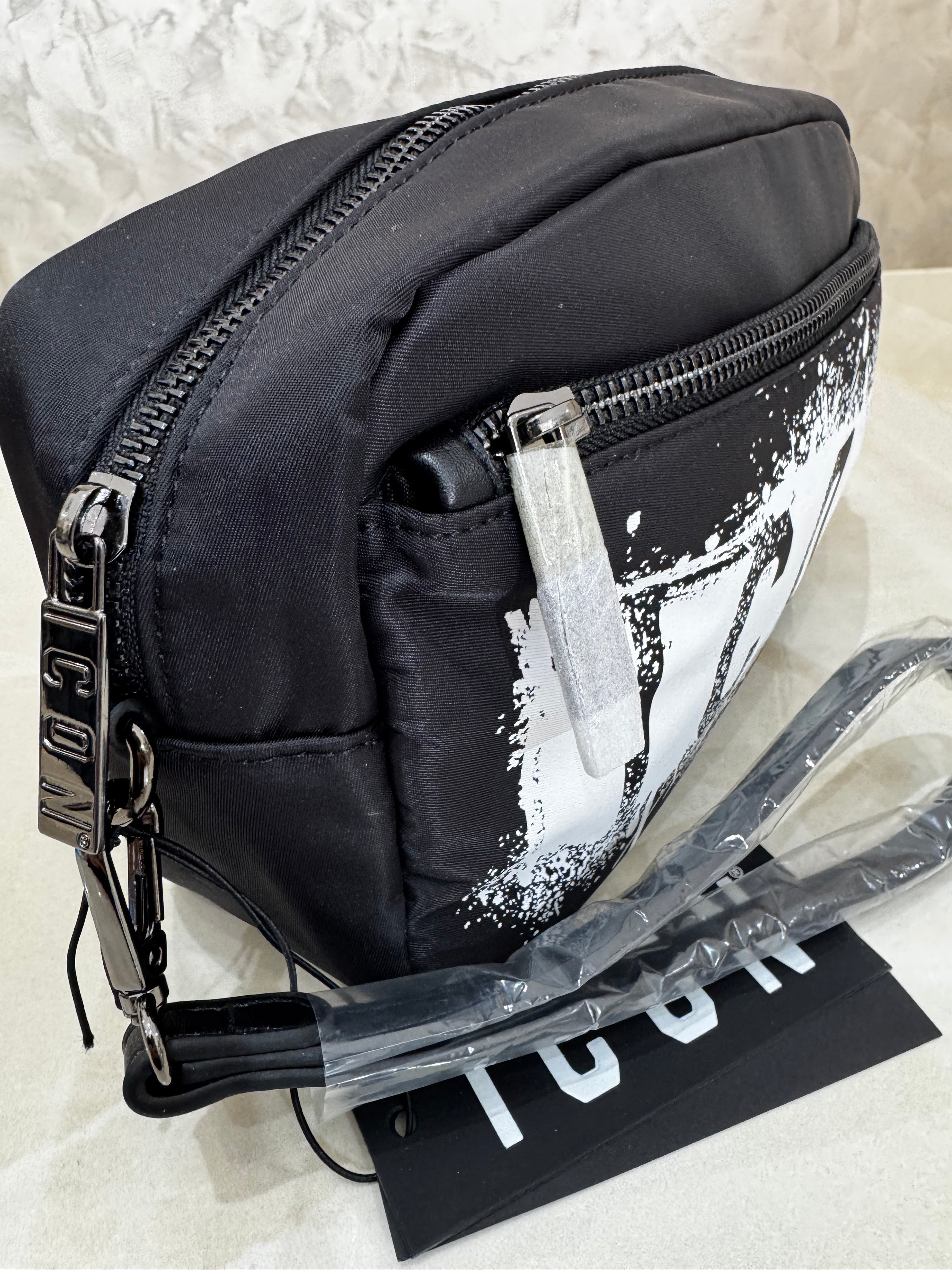 Esprimi il tuo stile con la borsa a tracolla ICON, dal design urbano e moderno. Realizzata in tessuto tecnico resistente, presenta la stampa frontale effetto splash in contrasto bianco che dona carattere e originalità.