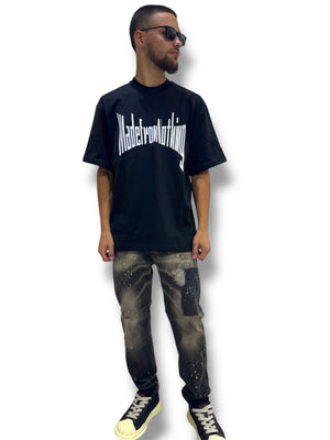 Non un semplice paio di jeans, ma un manifesto di stile. I jeans MFN reinterpretano il denim con un lavaggio nero slavato e sfumature uniche, arricchite da dettagli paint effect che donano carattere autentico e street. Piccole abrasioni e lavorazioni a mano trasformano ogni modello in un capo distintivo e irripetibile.