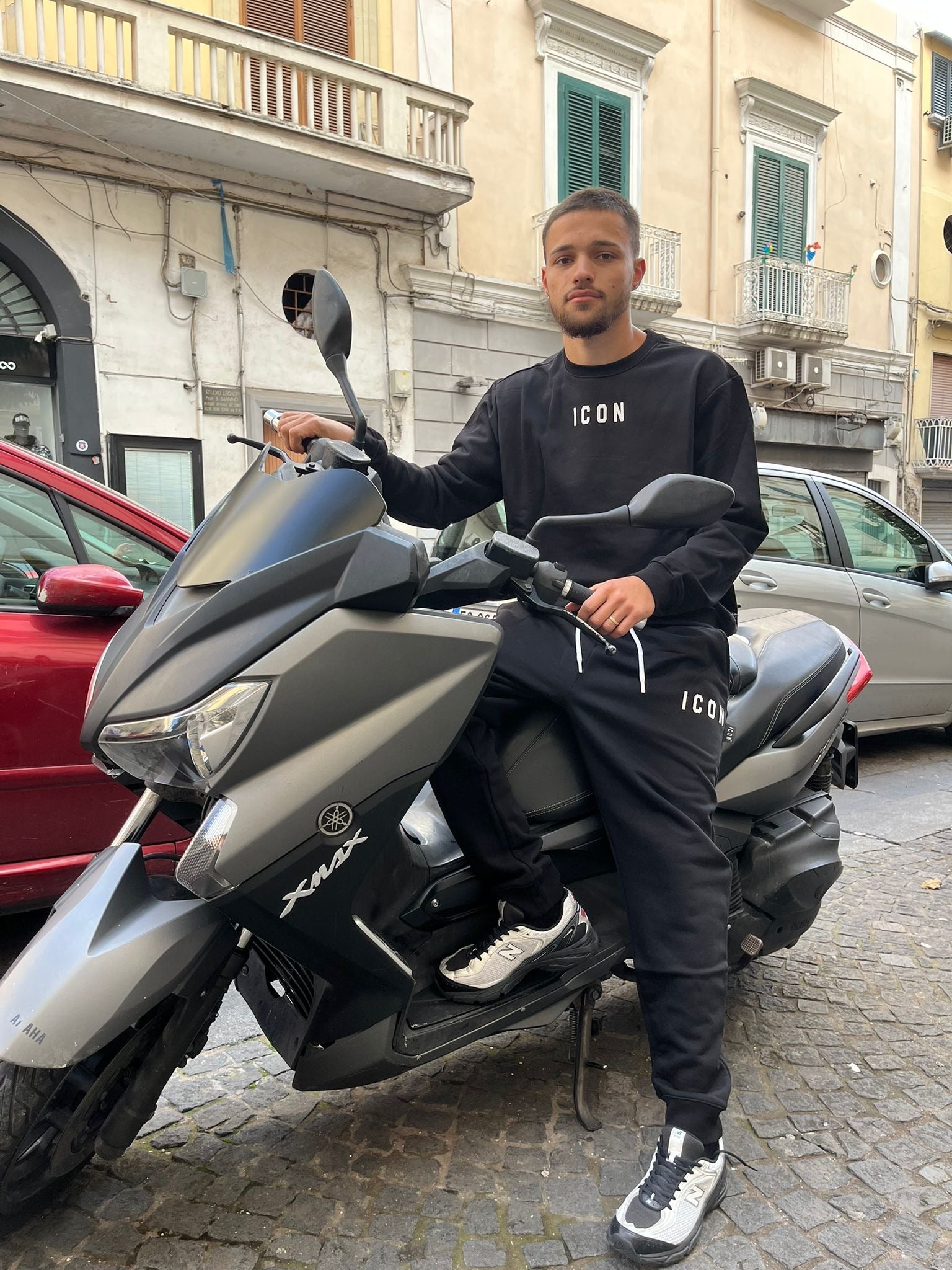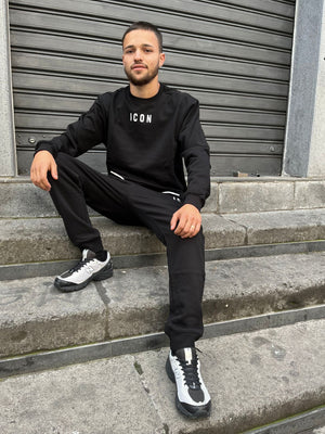 • Dettagli: La felpa a girocollo e i pantaloni sono caratterizzati dal logo "ICON" stampato in bianco sul petto e sulla coscia, che aggiunge un tocco di stile distintivo.