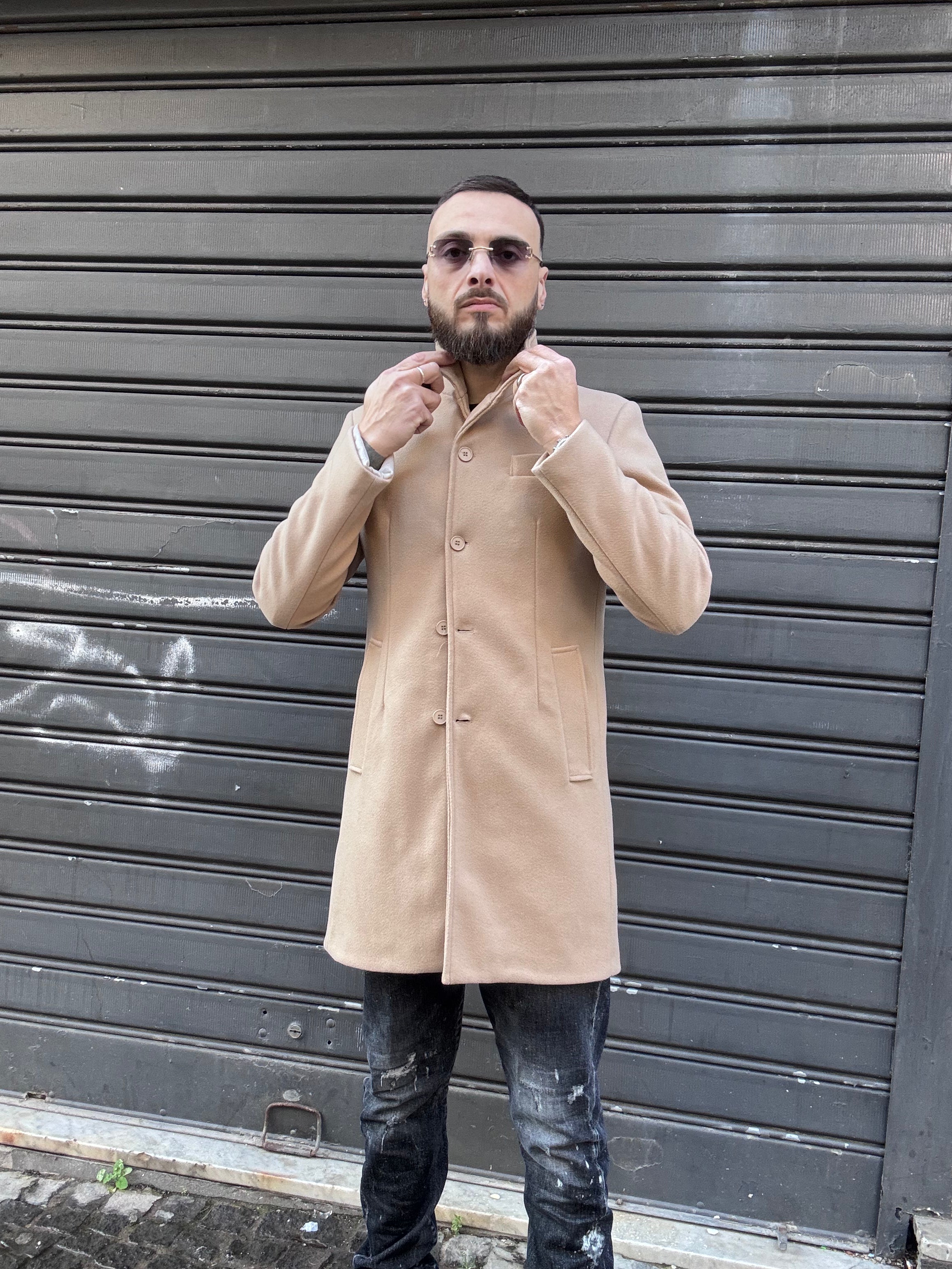 Cappotto uomo dal design coreano con mezzo collo, realizzato in pregiato blend di poliestere 65% e viscosa 35% che garantisce comfort e eleganza. Prodotto da azienda italiana con cura artigianale, questo capo combina stile contemporaneo e qualità costruttiva superiore. La silhouette moderna si adatta perfettamente a look casual e formali. Nella foto, il modello indossa la taglia 46. Un investimento sartoriale per chi ricerca versatilità e raffinatezza nel guardaroba.