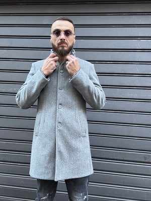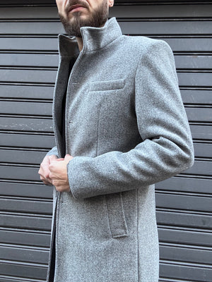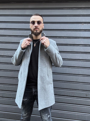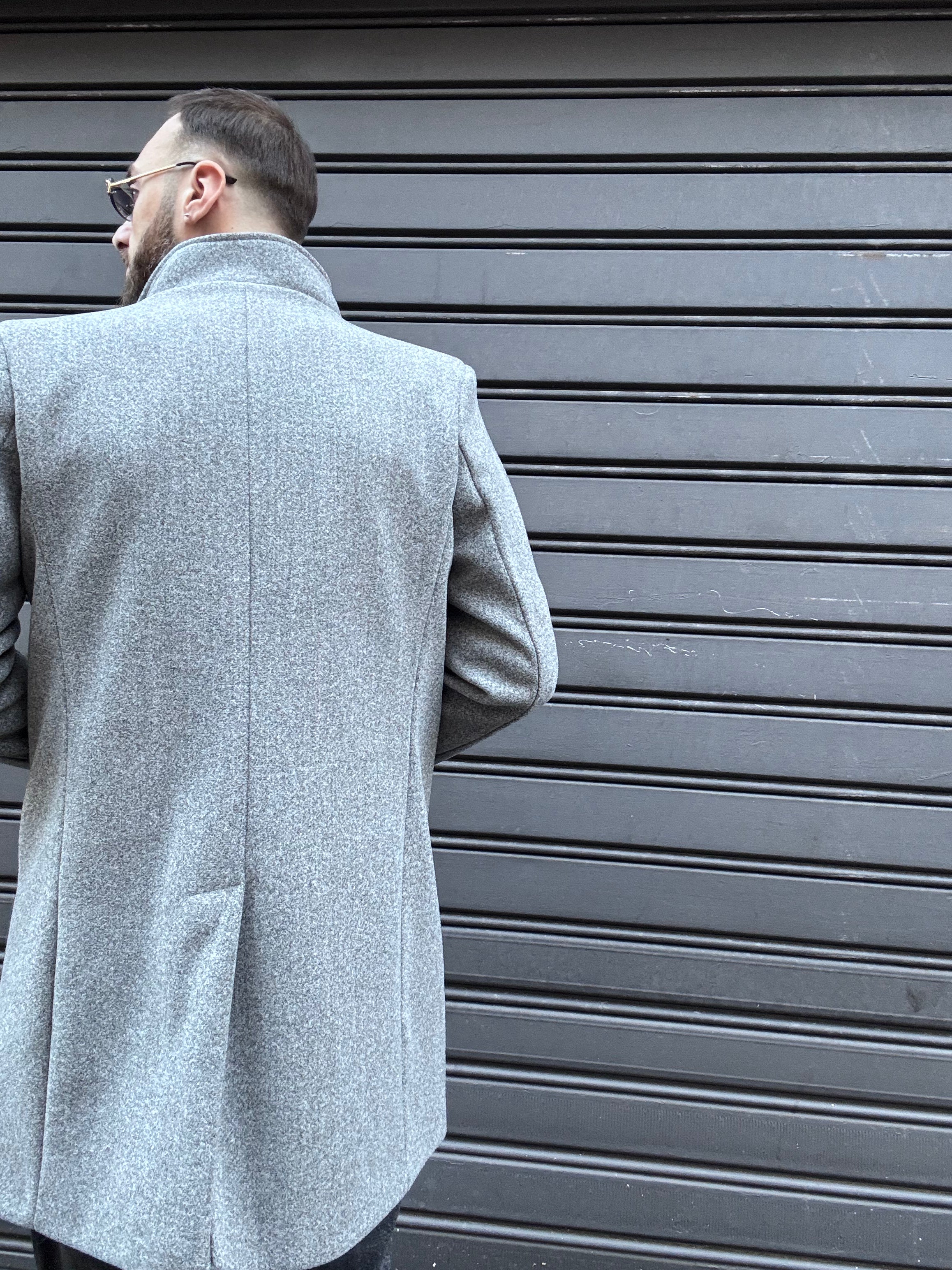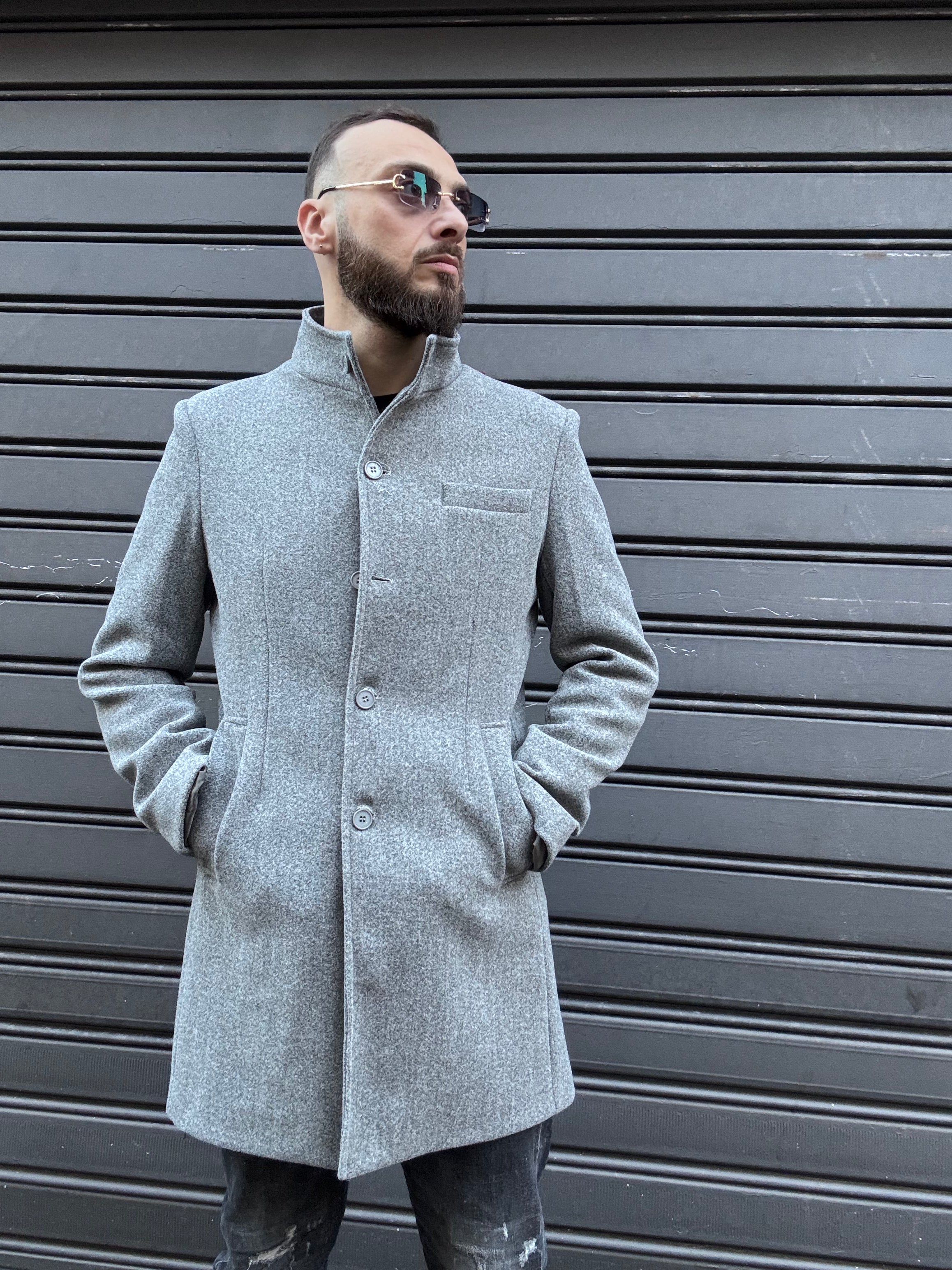 Cappotto uomo dal taglio contemporaneo con mezzo collo alla coreana, realizzato in pregiato blend di poliestere 65% e viscosa 35% che garantisce comfort e durabilità. La composizione tessile assicura una caduta elegante mantenendo la forma nel tempo, mentre la viscosa conferisce morbidezza e traspirabilità. Il modello presentato indossa la taglia 46, ideale per chi desidera una vestibilità moderna e raffinata. Perfetto per occasioni formali e casual, questo cappotto rappresenta un investimento di stile per il guardaroba maschile.