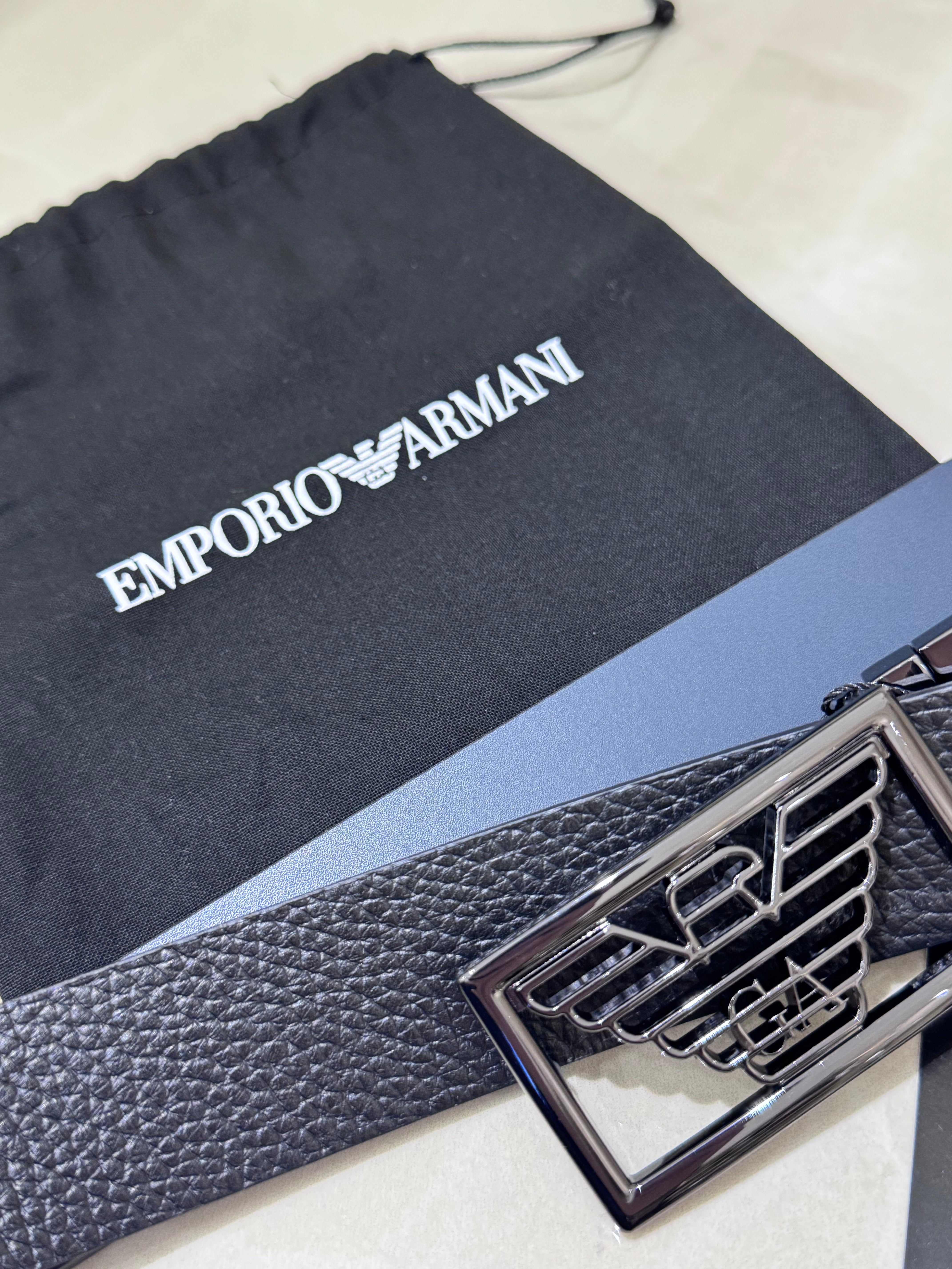 Cintura Emporio Armani realizzata in pelle pregiata con design reversibile, che consente due look distinti in un unico accessorio. La fibbia caratteristica del brand garantisce eleganza e solidità, mentre la qualità costruttiva assicura durabilità nel tempo. Perfetta per completare outfit formali e casual, questa cintura rappresenta un investimento versatile nel guardaroba essenziale. Un accessorio senza tempo che unisce funzionalità e stile raffinato.