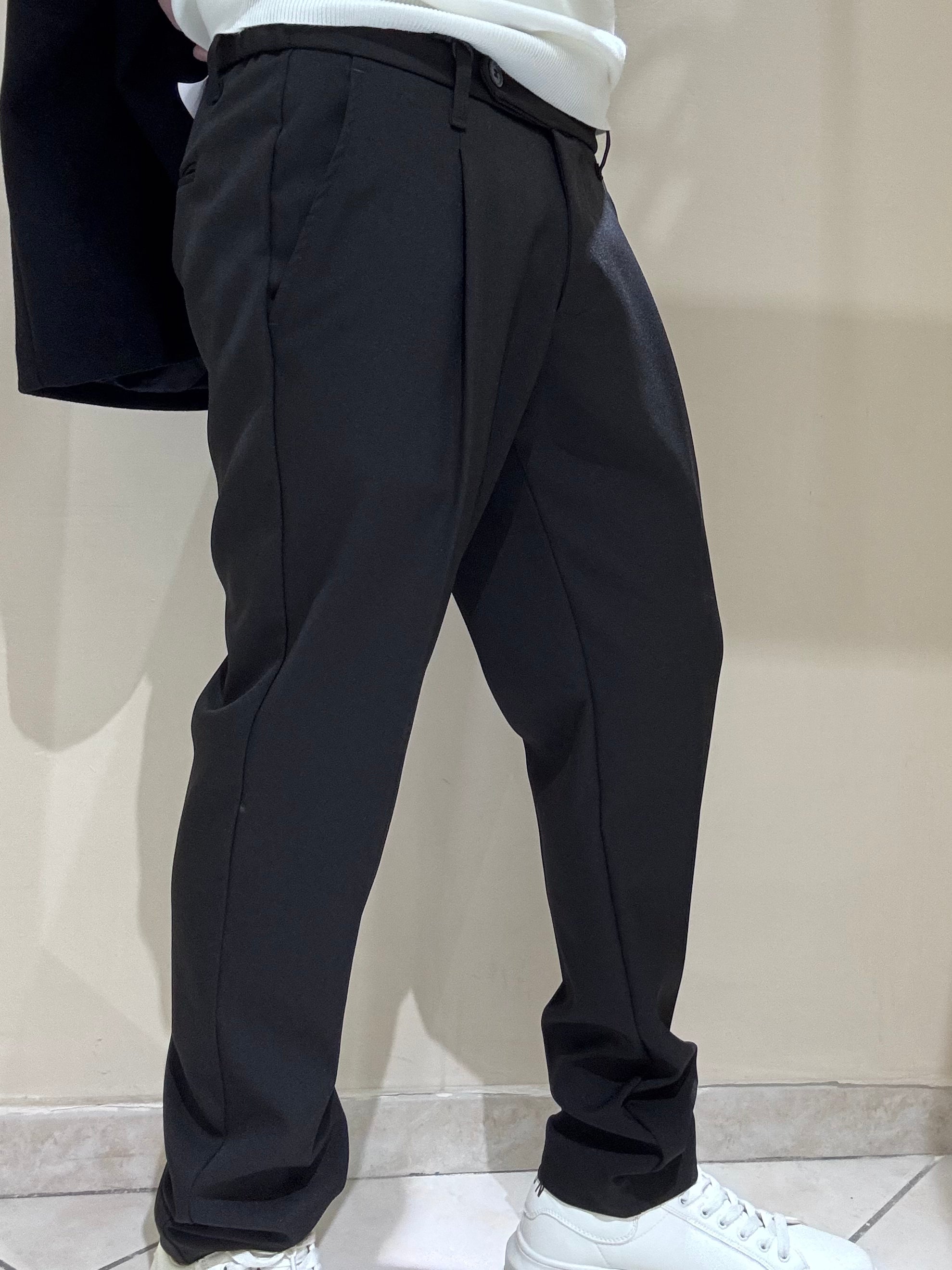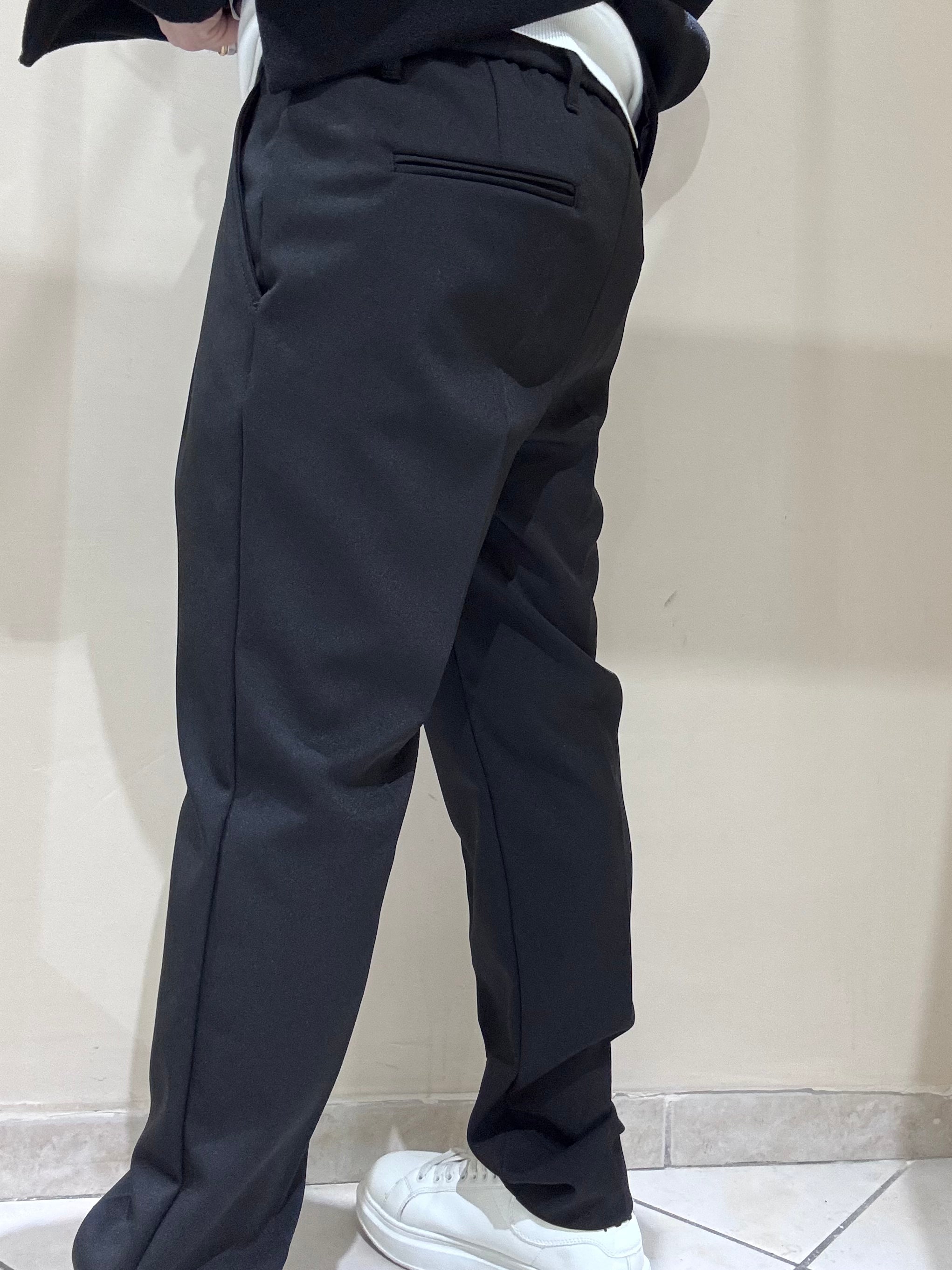 Pantalone sportivo con doppio bottone e zip, dotato di elastico in vita per una vestibilità confortevole e regolabile. Realizzato in poliestere 95%, offre resistenza e praticità nella cura quotidiana. La silhouette regular fit lo rende versatile per molteplici occasioni, dal tempo libero a contesti semi-formali, garantendo libertà di movimento e un'estetica raffinata.